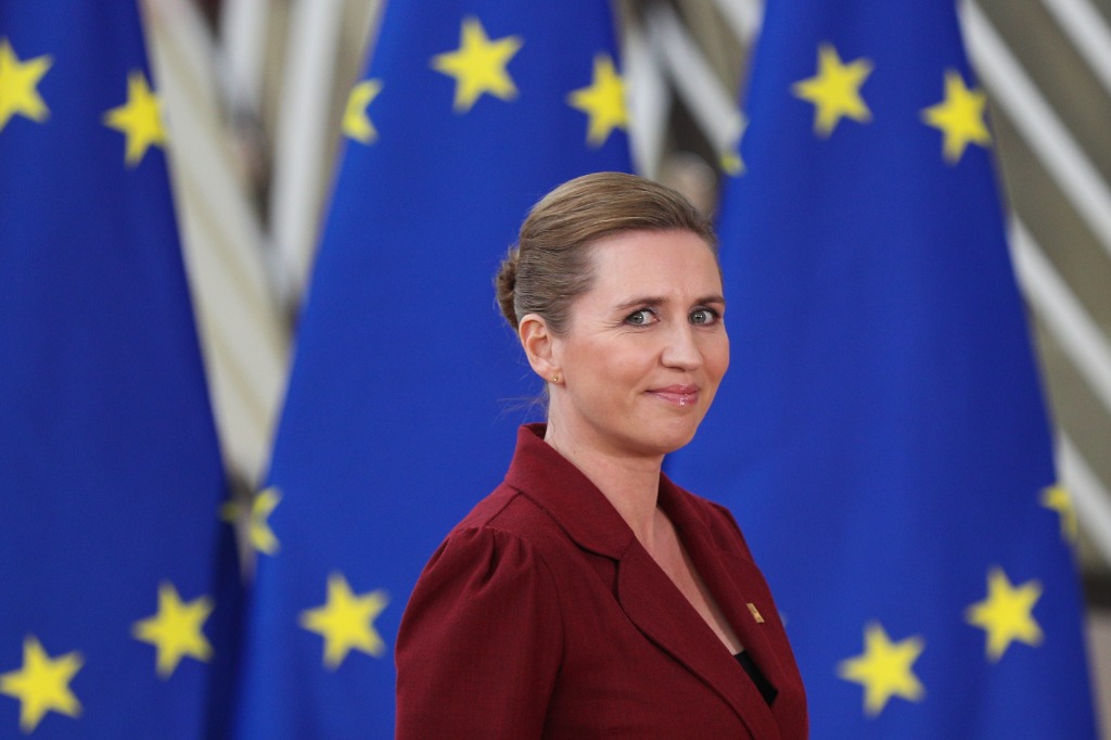 2020年2月20日,丹麥?zhǔn)紫喔ダ诐衫锟松诌_(dá)比利時(shí)布魯塞爾的歐盟總部準(zhǔn)備出席特別峰會(huì)。新華社記者鄭煥松攝