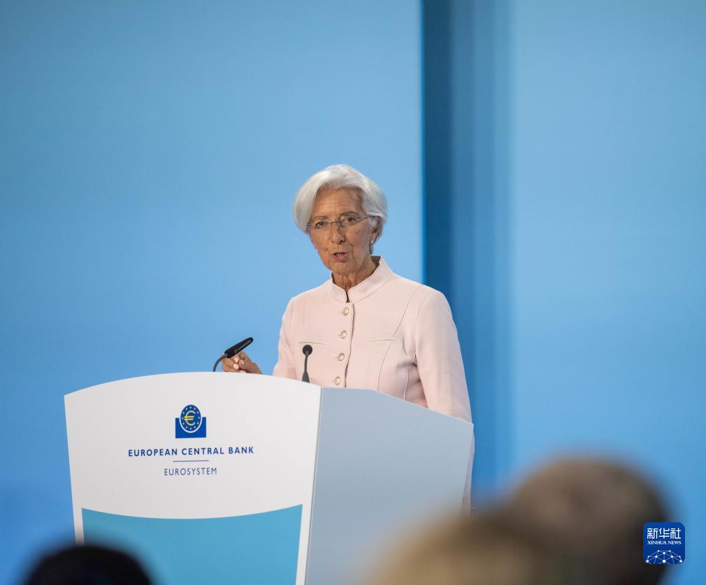 9月14日,歐洲中央銀行行長拉加德在德國法蘭克福歐洲央行總部舉行的新聞發(fā)布會上講話。歐洲中央銀行14日召開貨幣政策會議,決定將歐元區(qū)三大關鍵利率均上調25個基點。這是歐洲央行自去年7月以來連續(xù)第十次加息。新華社發(fā)(歐洲央行供圖)