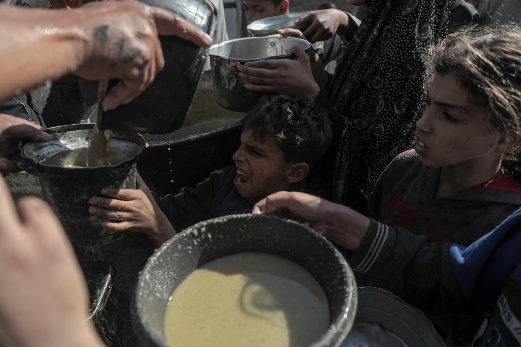 11月23日,巴勒斯坦人在加沙地帶中部代爾拜拉赫領(lǐng)取救濟(jì)食物。新華社發(fā)(里澤克·阿卜杜勒賈瓦德攝)