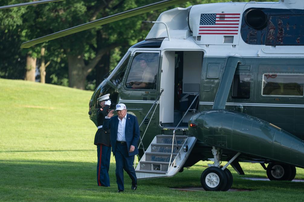 7月6日,美國總統(tǒng)特朗普乘直升機返回華盛頓白宮。新華社記者胡友松攝