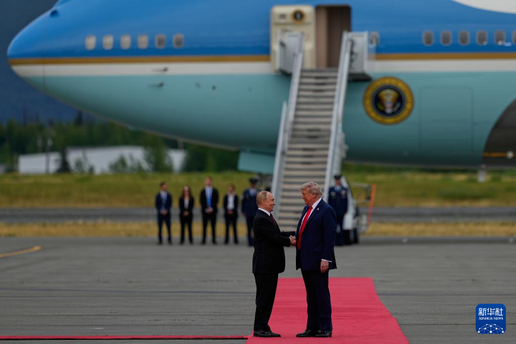 當(dāng)?shù)貢r(shí)間8月15日11時(shí)許,美國(guó)總統(tǒng)特朗普(前右)和俄羅斯總統(tǒng)普京在美國(guó)阿拉斯加州安克雷奇市埃爾門(mén)多夫-理查森聯(lián)合軍事基地的機(jī)場(chǎng)會(huì)面。新華社/美聯(lián)