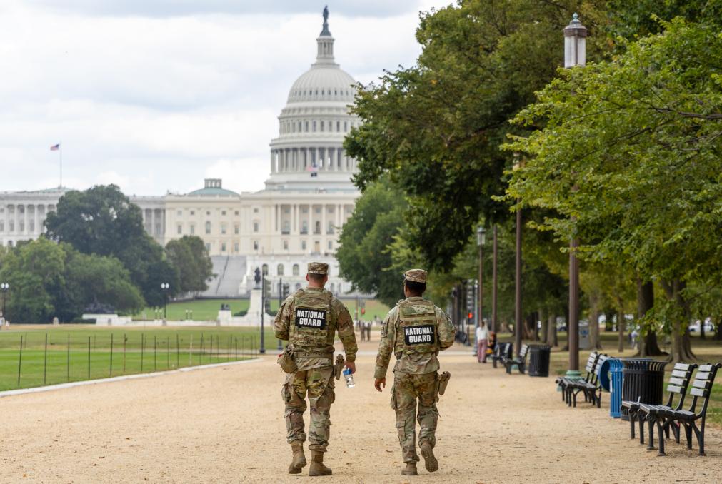 9月4日,國民警衛(wèi)隊成員在美國首都華盛頓巡邏。新華社記者胡友松攝