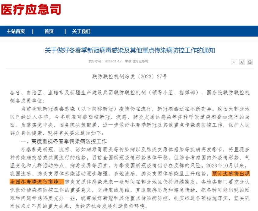 國務(wù)院聯(lián)防聯(lián)控機制近期發(fā)布通知,要求各地做好冬春季新冠病毒感染及其他重點傳染病防控工作。
