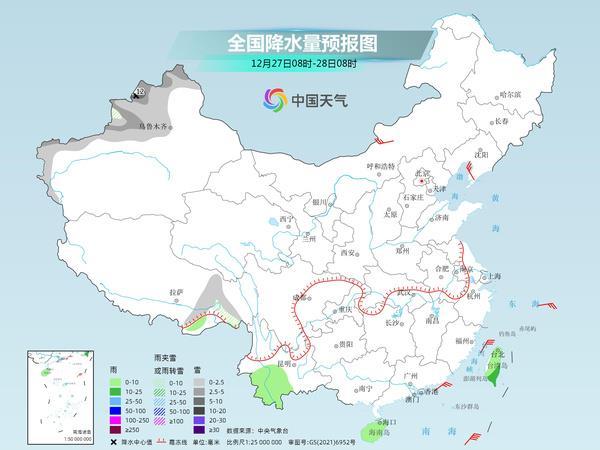 常年冬至節(jié)氣期間是全國平均降水量最少的時段,今年的降水情況正符合這一常態(tài)。今明天,全國大部地區(qū)降水稀少,降水主要集中在新疆北部、西南地區(qū)、海南島、臺灣島、廣東沿海一帶。