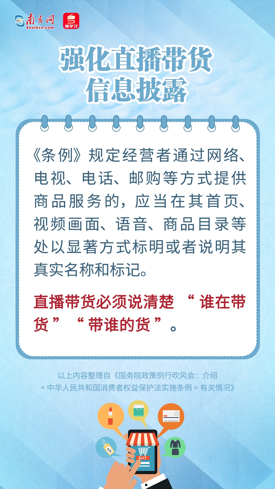 4月9日,國務院新聞辦公室舉行國務院政策例行吹風會(直播回顧),邀請市場監(jiān)管總局和最高人民法院等有關負責人介紹近日發(fā)布的《中華人民共和國消費者權益保護法實施條例》(下稱《條例》)有關情況。據介紹,此次《條例》針對直播帶貨、大數據殺熟、自動續(xù)費、刷單炒信等網絡消費亂象,出臺新規(guī)進行規(guī)范。其中,特別規(guī)定直播帶貨必須說清楚“誰在帶貨”“帶誰的貨”。