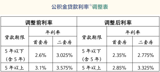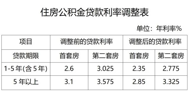 5年以下(含5年)和5年以上第二套個(gè)人住房公積金貸款利率分別調(diào)整為不低于2.775%和3.325%。