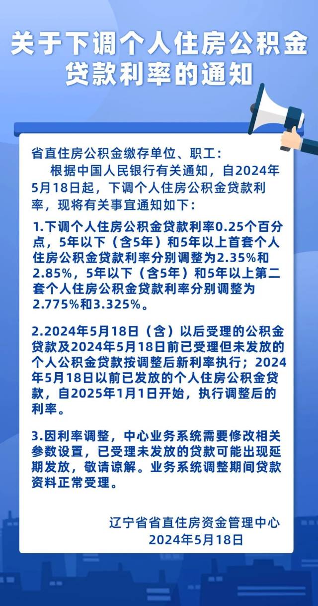 2024年5月18日起發(fā)放的個(gè)人住房公積金貸款,執(zhí)行新利率。