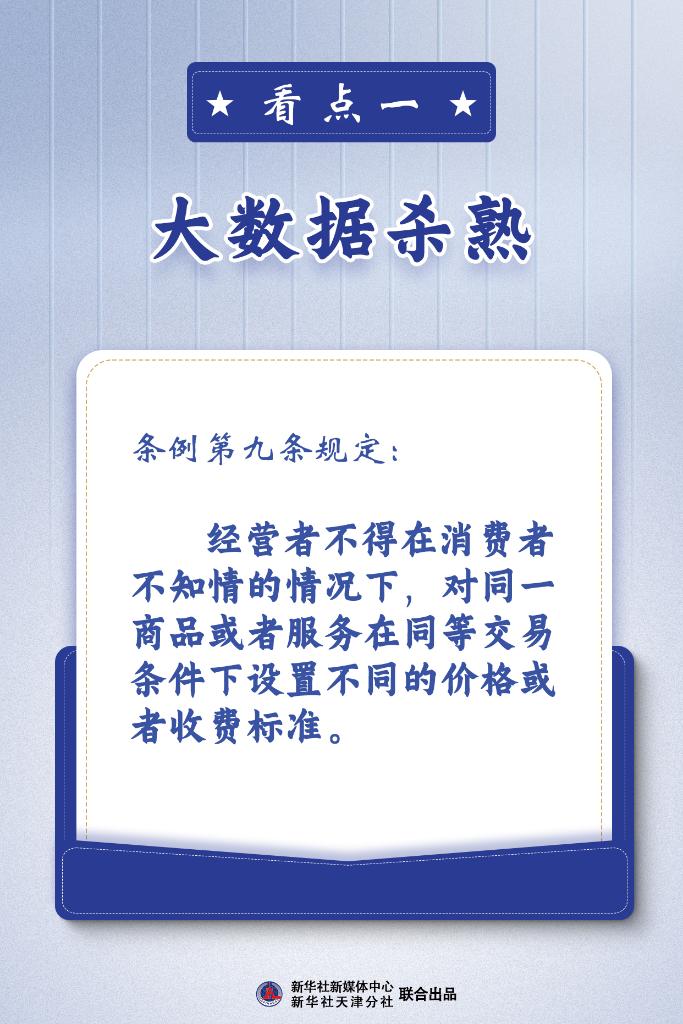新華社天津6月29日電(記者白佳麗)消費(fèi)者權(quán)益保護(hù),事關(guān)億萬消費(fèi)者的福祉。《中華人民共和國消費(fèi)者權(quán)益保護(hù)法實(shí)施條例》將于今年7月1日正式施行。條例對大數(shù)據(jù)殺熟、自動續(xù)費(fèi)難取消、預(yù)付式消費(fèi)商家跑路等備受消費(fèi)者關(guān)注的問題,進(jìn)行了明確規(guī)定。記者梳理8大看點(diǎn),帶您讀懂條例。
