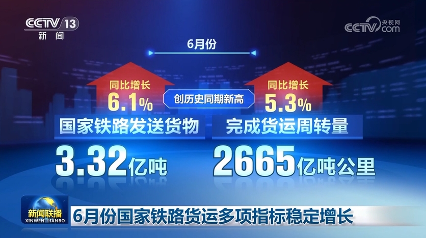 記者從國(guó)鐵集團(tuán)獲悉,6月份,國(guó)家鐵路貨物發(fā)送量、貨運(yùn)周轉(zhuǎn)量等多項(xiàng)指標(biāo)創(chuàng)出歷史同期新高。