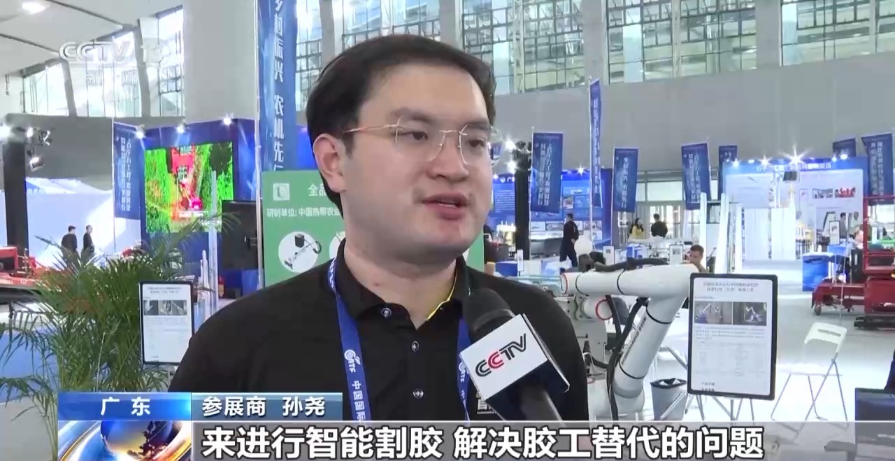參展商 孫堯:這一臺機(jī)器人基本上可以管理五十畝,進(jìn)行智能割膠,解決膠工替代的問題。