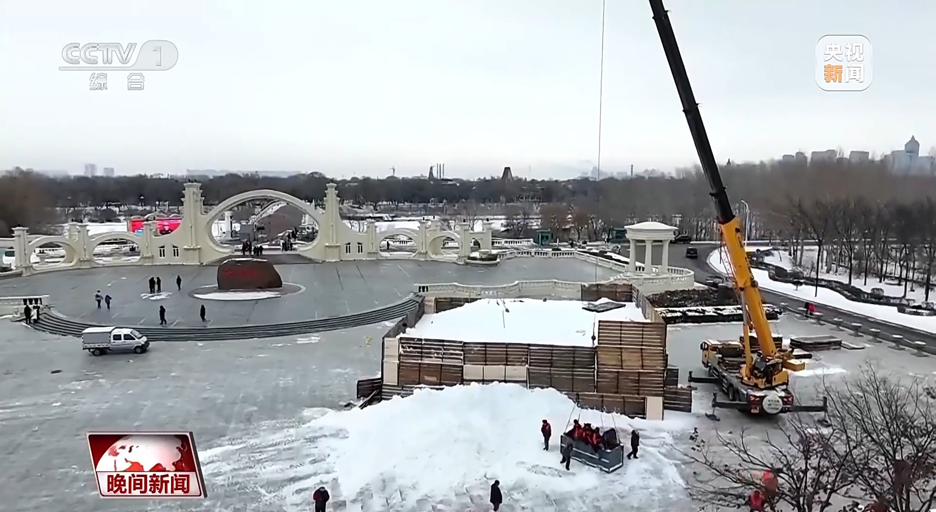 總臺記者 張程:在我身后,幾輛卡車正忙碌運(yùn)送人造雪,現(xiàn)場的吊車先堆出雪塊,再由工人師傅們把雪塊夯實(shí),為即將開啟的雪雕工作做準(zhǔn)備。再過十天左右,我身后將會佇立起一座高20米的大雪人,預(yù)計經(jīng)過半個多月的施工建設(shè),預(yù)計12月中下旬哈爾濱冰雪大世界和太陽島雪博會將同期開園。