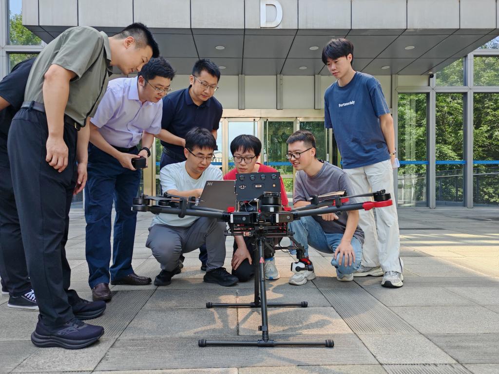 8月13日,北京航空航天大學(xué)師生進行自研仿復(fù)眼偏振組合導(dǎo)航系統(tǒng)無人機聯(lián)調(diào)測試。(張之軒 攝)