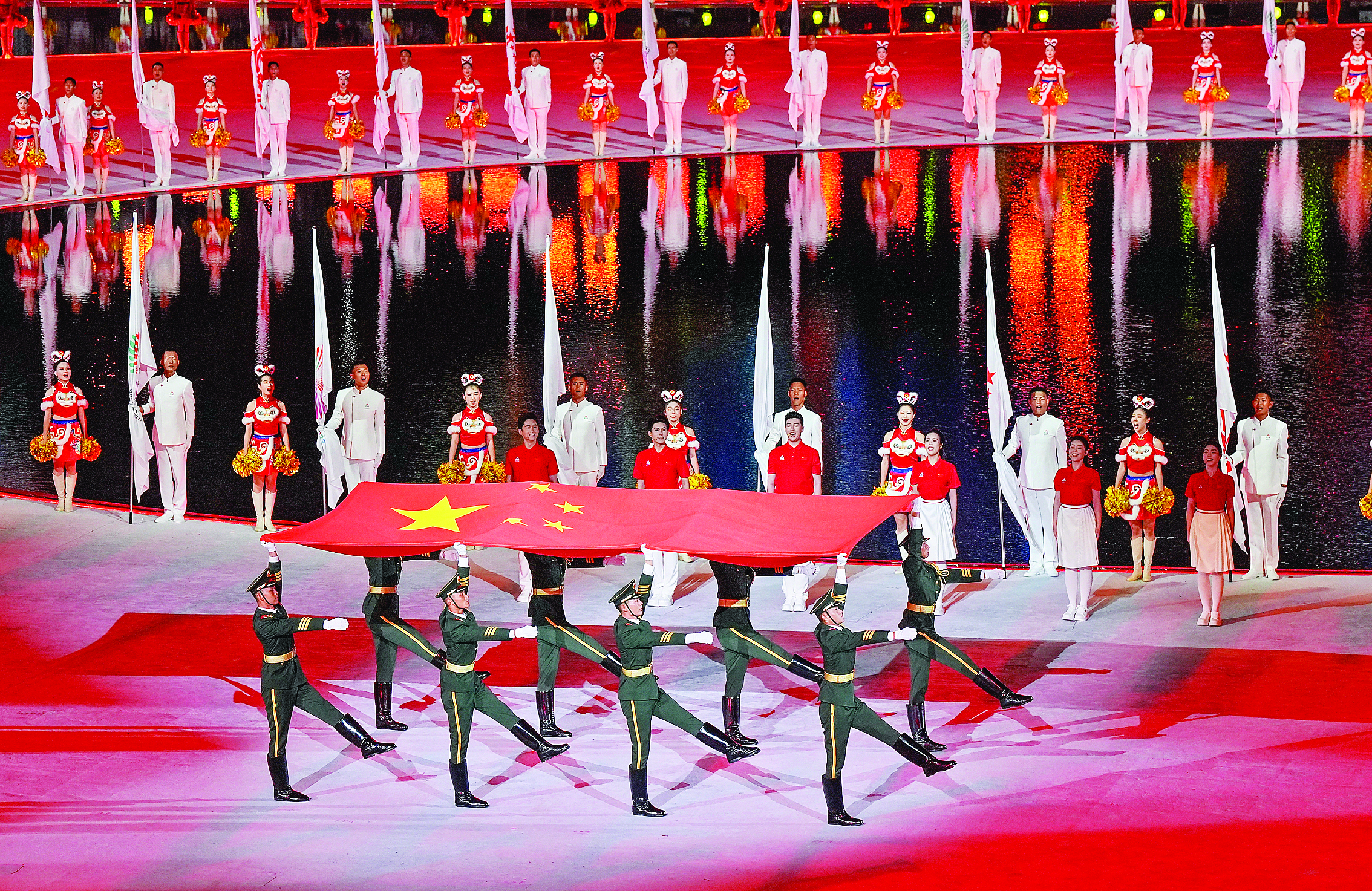 旗手護(hù)送中華人民共和國國旗入場。