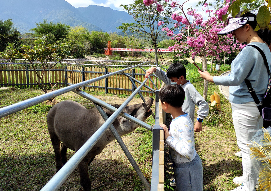游客在浮生六季生態(tài)園與動(dòng)物親切互動(dòng)。