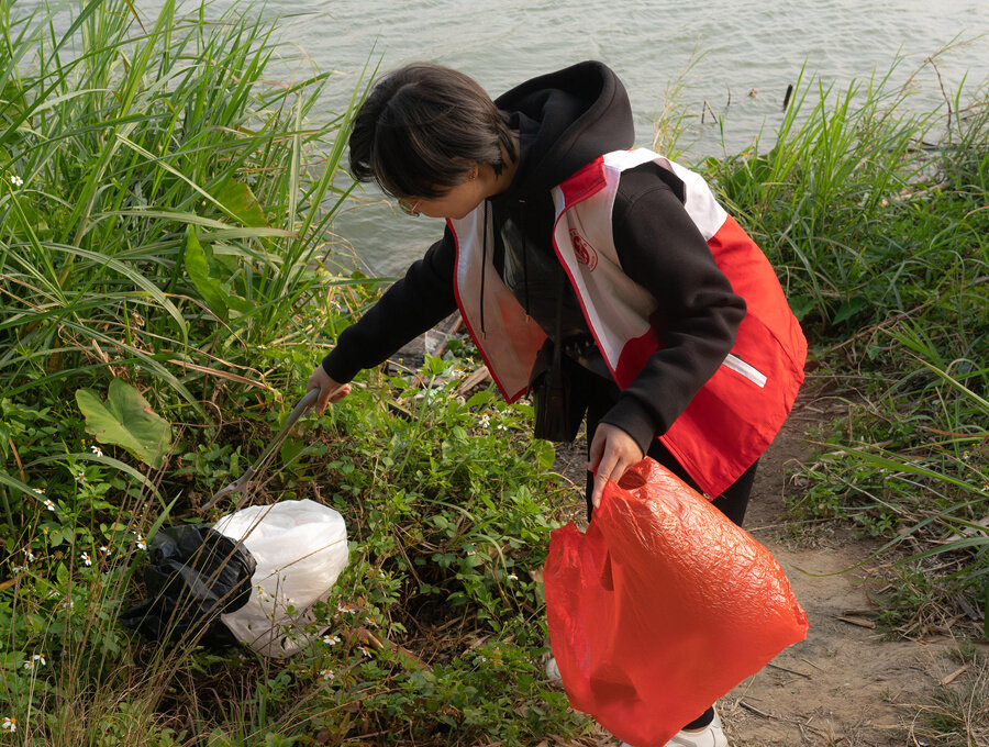 在江邊的草叢里,惠報志愿者彭覓笑彎著腰,專注細(xì)致地清理著隱藏在草叢間隙里的垃圾。在她身后不遠處,放有志愿者們收集的幾袋垃圾。惠報志愿者干勁十足,讓在旁運送垃圾的環(huán)衛(wèi)工人也豎起大拇指點贊:“謝謝你們,你們經(jīng)常來,現(xiàn)在公園的環(huán)境變得越來越好,感謝你們的努力。”
