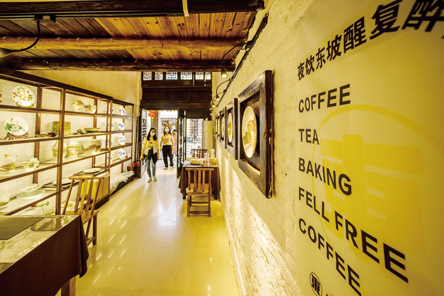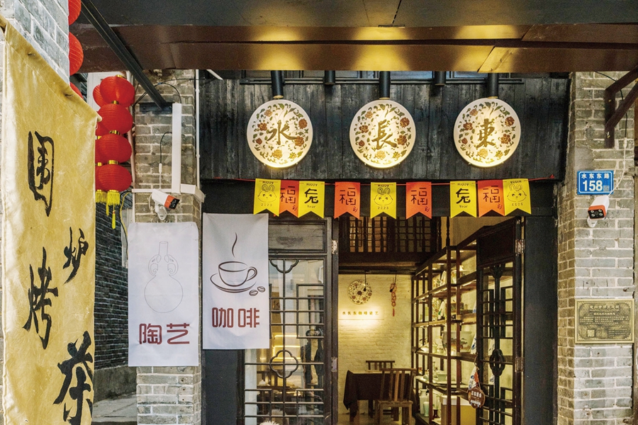 水長(zhǎng)東咖啡瓷藝館內(nèi)是“竹筒屋”形制,別有洞天。
