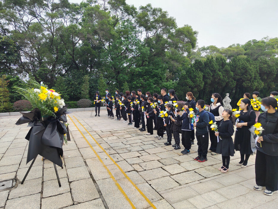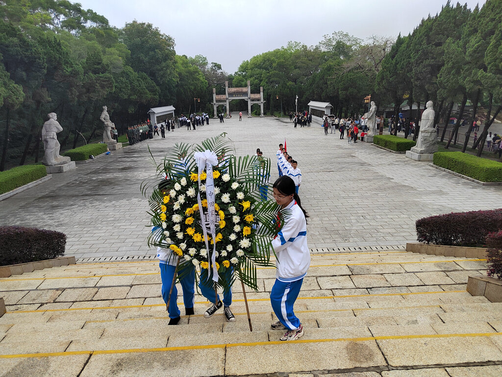 惠州市一中田家炳校區(qū)學(xué)生到東江人民革命烈士紀(jì)念碑前祭掃。