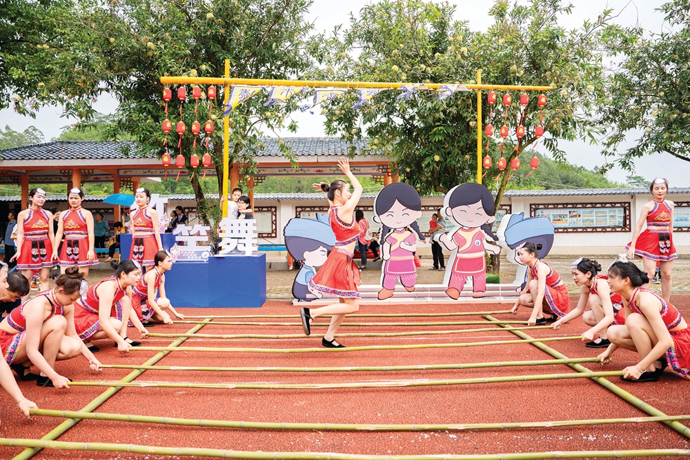 博羅橫河畬族同胞跳起竹竿舞喜迎八方客。