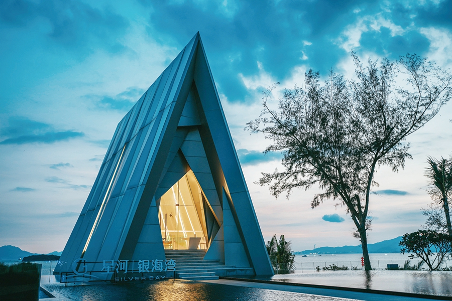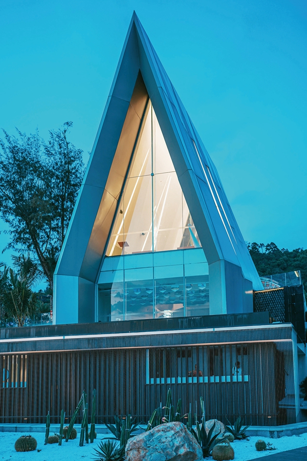 玫瑰禮堂選址惠東縣巽寮濱海旅游度假區(qū)銀海灣沙灘。禮堂矗立在海岸之上,是綻放在濱海與沙灘的璀璨明珠,更是網(wǎng)紅達人追捧的旅行打卡地標。濱水而建的禮堂,意在將建筑、天空、水面、沙灘融為一體,成為一個集家庭聚會、情侶漫游、網(wǎng)紅打卡、親子互動等多功能的空間場域。