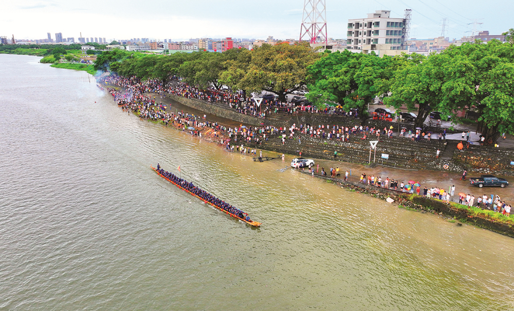 博羅園洲下南村“龍船景”民俗活動熱鬧非凡,東江沿岸人頭攢動。 惠州日報記者鐘暢新 攝