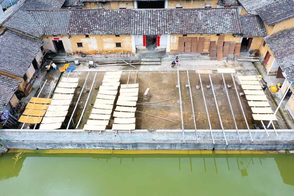 每到竹筍收成季,新寮村家家戶戶的露臺(tái)上曬滿筍干。 惠州日?qǐng)?bào)記者湯渝杭 攝