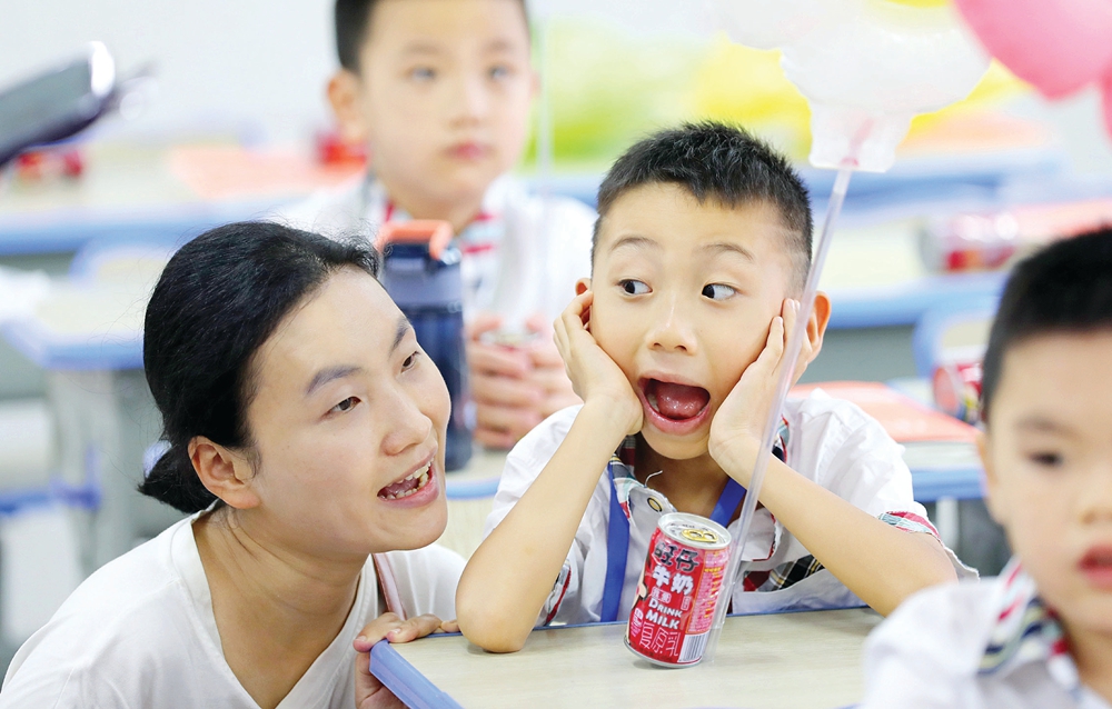 過了一個(gè)暑假,惠州市南壇小學(xué)鼎峰分校的學(xué)生再次見面非常開心。