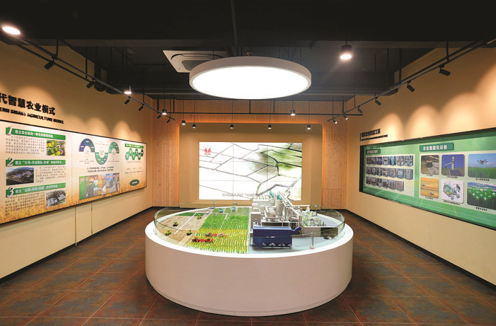在龍門縣絲苗米省級現(xiàn)代農(nóng)業(yè)產(chǎn)業(yè)園的龍門絲苗米文化體驗館內(nèi),不僅可以看到“袁隆平大米”產(chǎn)品展示,還可以看到袁隆平超級水稻的模型展示和展板介紹。該館還設(shè)立了關(guān)于袁隆平的展示專區(qū),袁老的雕像安然矗立,手持稻穗,目光深邃地凝視遠方。雕像背后是水車和浮雕拼圖,間有田野圖案,將袁隆平躬耕田壟、科研攻堅的瞬間定格,引人注目和無限遐思。