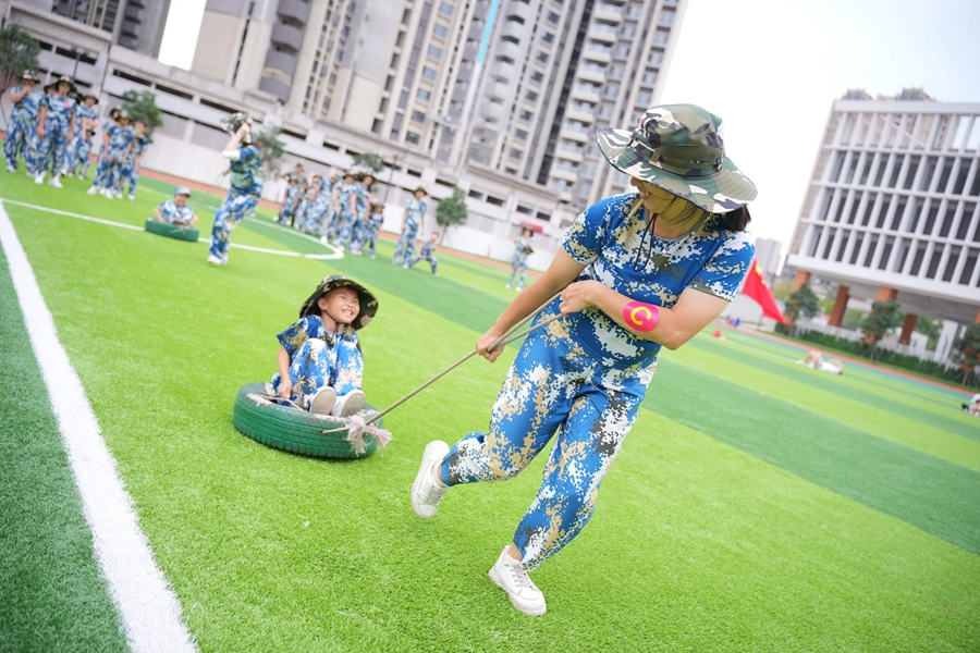 親子國(guó)防兵戎裝登場(chǎng),家長(zhǎng)斗志昂揚(yáng),孩子精神飽滿。據(jù)介紹,本次運(yùn)動(dòng)會(huì)以親子游樂為主,具體就是“大兵小兵齊上陣,軍事游戲大挑戰(zhàn)”。下午的操場(chǎng)上暖陽(yáng)和煦,歡快的入場(chǎng)曲在空中回蕩,鮮艷的隊(duì)旗隨風(fēng)揚(yáng)起。在總教官帶領(lǐng)下,身著迷彩服的“大兵小兵”們操練起剛勁有力的大會(huì)操,每個(gè)人臉上都洋溢著陽(yáng)光自信的微笑。