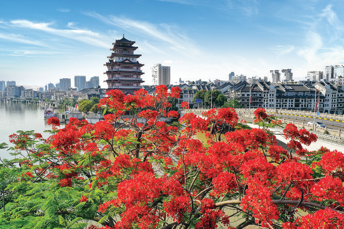 五月的惠州開滿了鳳凰花,猶如燃放了一場艷麗的煙火。