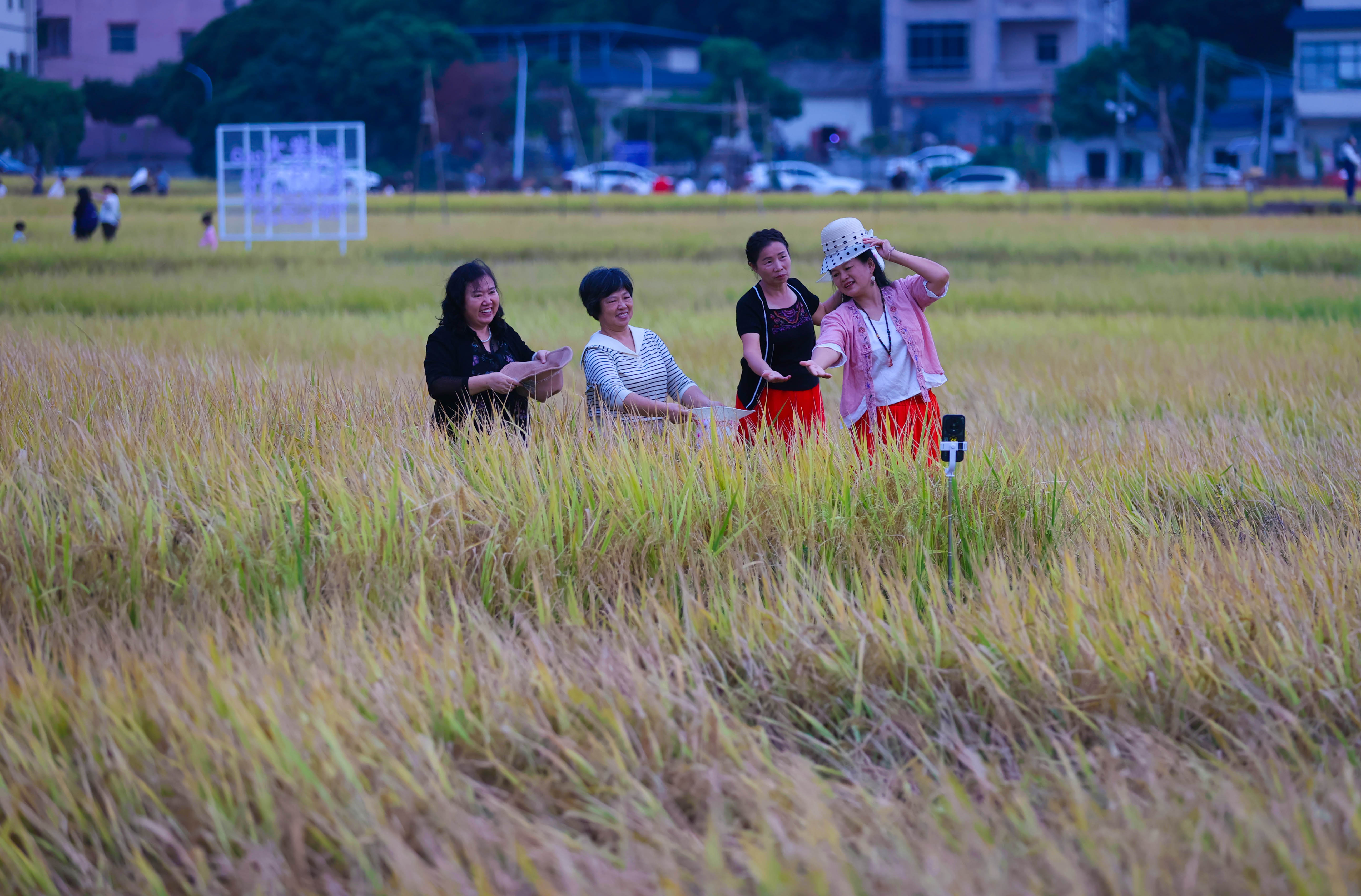 稻田田埂拍照。
