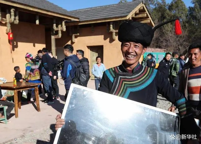 在四川省昭覺縣三河村的易地扶貧安置點(diǎn),彝族群眾馬海日聰喜搬新居(2019年2月11日攝)。新華社記者 江宏景 攝