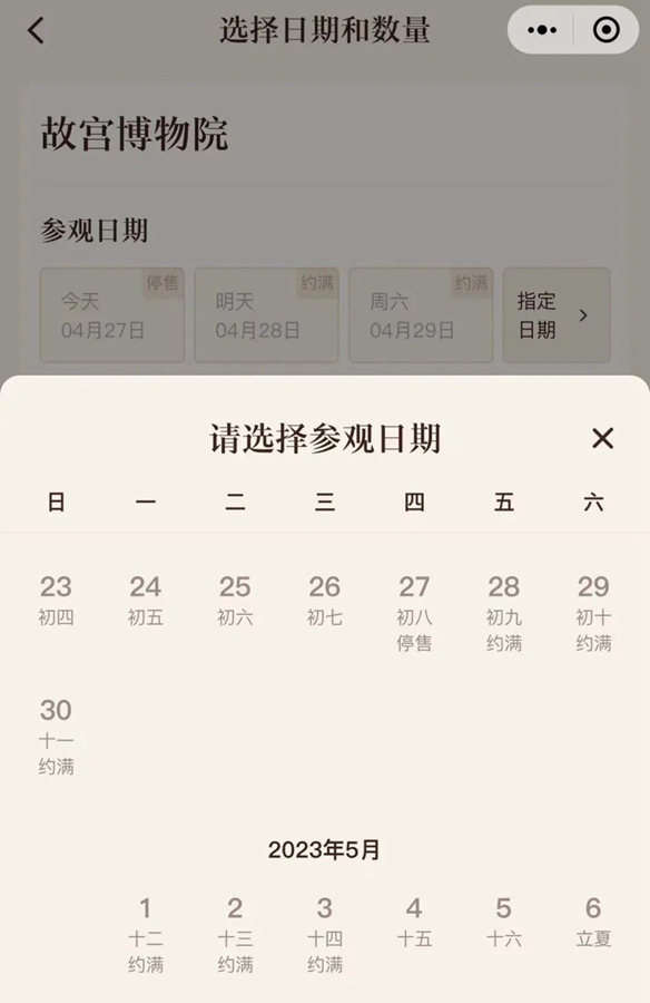 4月29日至5月1日的圓明園成人票已經(jīng)預(yù)約滿。