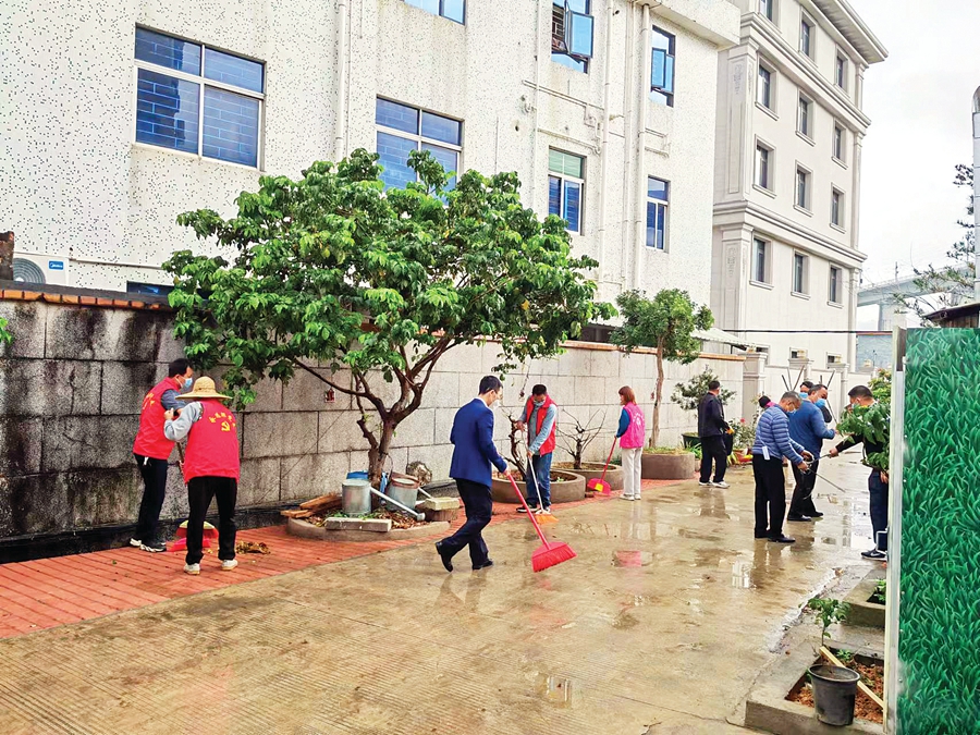 黨群齊參與清潔村居環(huán)境。 惠州日報記者邱舒婷 通訊員瀝林宣 攝