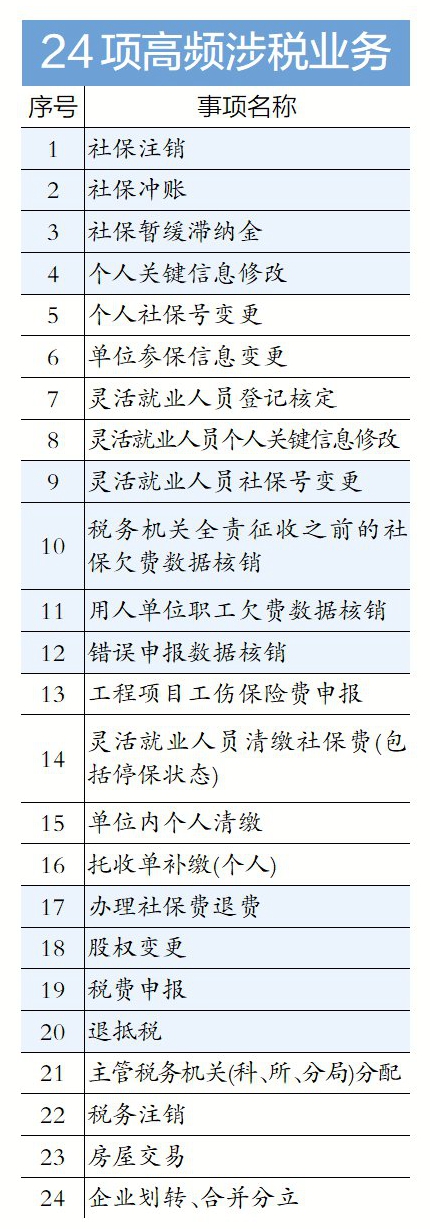24項高頻涉稅業(yè)務進駐區(qū)行政服務中心