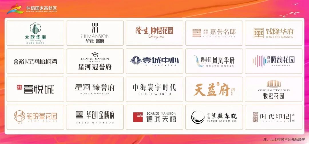 昊翔源壹城中心、天益御府、星河臻譽(yù)府、 金裕星河梧桐灣、華廷瑞府、隆生仲愷花園、鴻潤騰韻花園、大欣華庭、禹洲五經(jīng)嘉譽(yù)名邸、時代印記、錢隆華府
