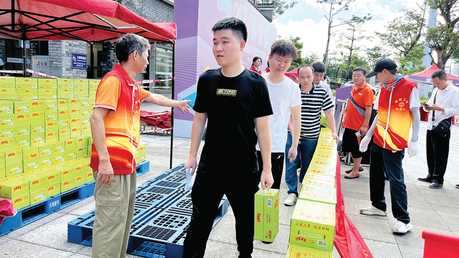 新業(yè)態(tài)勞動(dòng)者獲贈(zèng)清涼飲品。