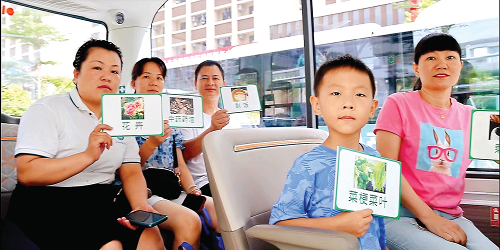 群眾帶著生活常見垃圾手牌乘坐對應(yīng)的垃圾分類無人駕駛巴士。 惠州日報記者邱舒婷 魏怡蘭 通訊員曾嘉怡 攝