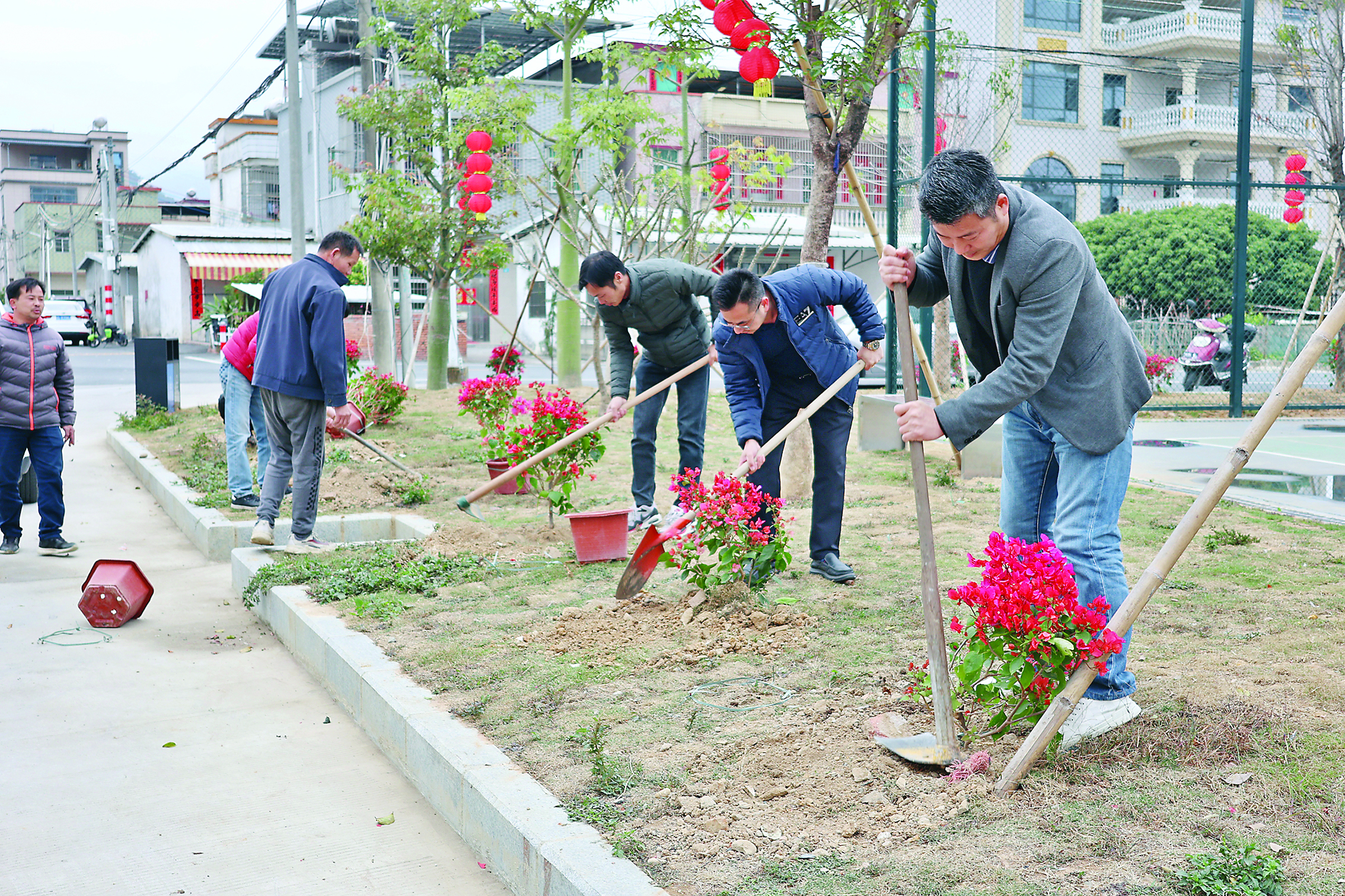 “自己的家當然要裝扮得美麗漂亮。村里道路白改黑后,更需要時花來襯托。”張錦強是企嶺村人,從去年開始,他就堅持為企嶺村的迭企路免費更換時花,目前已更換了3個季度。包括種樹、種時花在內(nèi)的美化環(huán)境花銷,已累計投入約23萬元。
