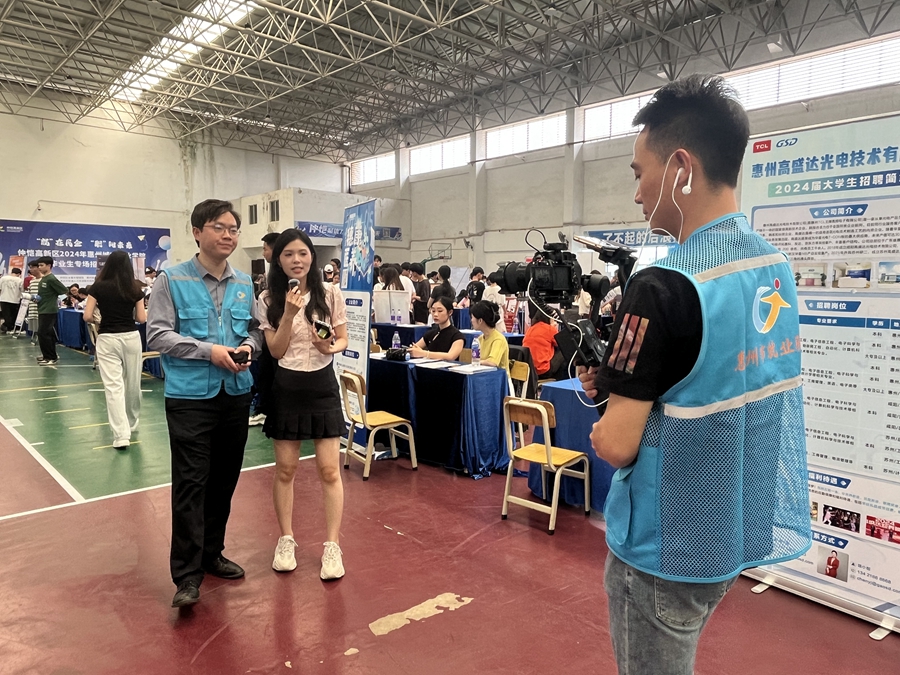 4月12日,惠州城市職業(yè)學(xué)院的體育館內(nèi)人頭攢動(dòng),“‘就’在民企‘職’等你來(lái)”仲愷高新區(qū)2024年惠州城市職業(yè)學(xué)院畢業(yè)生專場(chǎng)招聘活動(dòng)在此舉行,110家參會(huì)企業(yè)為學(xué)生們帶來(lái)789個(gè)職位、4069個(gè)崗位。