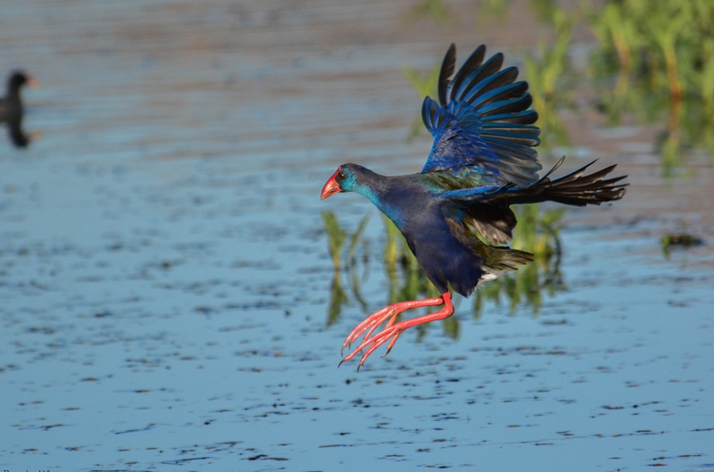 現(xiàn)身潼湖國家濕地公園的紫水雞。惠州日?qǐng)?bào)記者邱舒婷 通訊員郭翔 攝