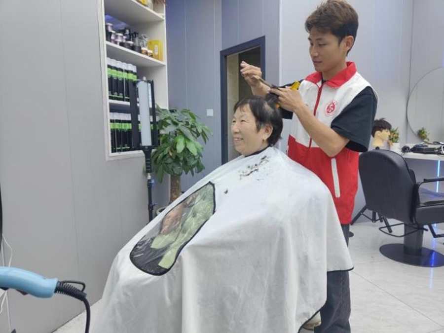 “合伙人”阿凱免費給老人理發(fā)。 惠州日報記者邱舒婷 通訊員莊碧雯 攝