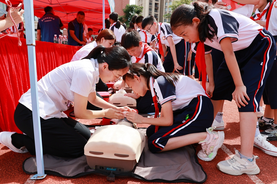 活動現(xiàn)場設(shè)置多個宣傳展位,通過專業(yè)的講解和“沉浸式”體驗,向?qū)W生普及防溺水安全知識,提高孩子們的安全意識和自救能力。在安全急救技能體驗區(qū),專業(yè)的急救人員通過模擬場景,讓學生們了解如何使用AED、如何進行心肺復蘇等基本急救技能。在實驗室展位,工作人員通過裝了水的氣球和沒有裝水的氣球、干冰泡泡等系列實驗,幫助學生更直觀感受和理解溺水的狀態(tài),從而增強他們的安全意識。在溺水急救模擬現(xiàn)場,學生在專業(yè)人員的指導下體驗溺水場景,學習如何在遇到危險時冷靜應(yīng)對、自救互救。