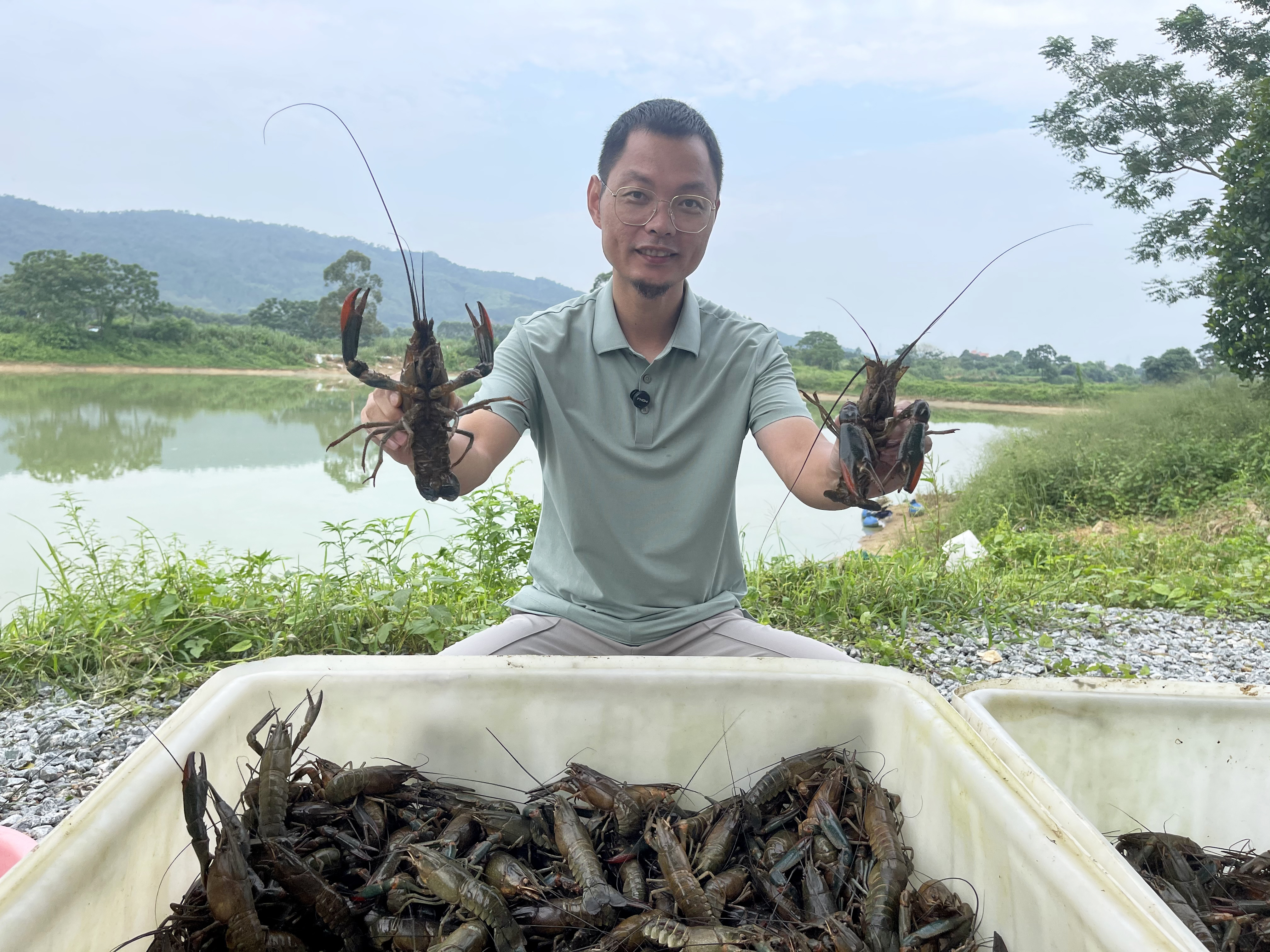 說干就干,2023年10月,他和團(tuán)隊包下玳瑁村約180畝魚塘,并在博羅泰美投資約140畝魚塘,合計超320畝魚塘,開啟藍(lán)龍蝦養(yǎng)殖。