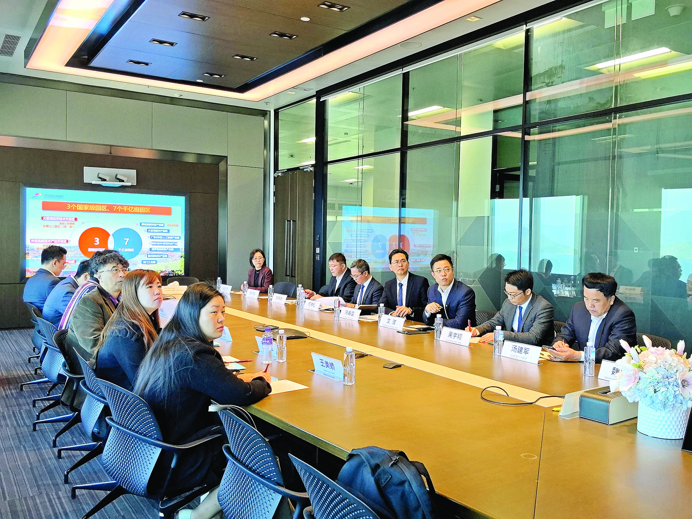 區(qū)黨工委人才辦與香港青年協(xié)會探討相關合作內容。 惠州日報記者鐘瑋 攝