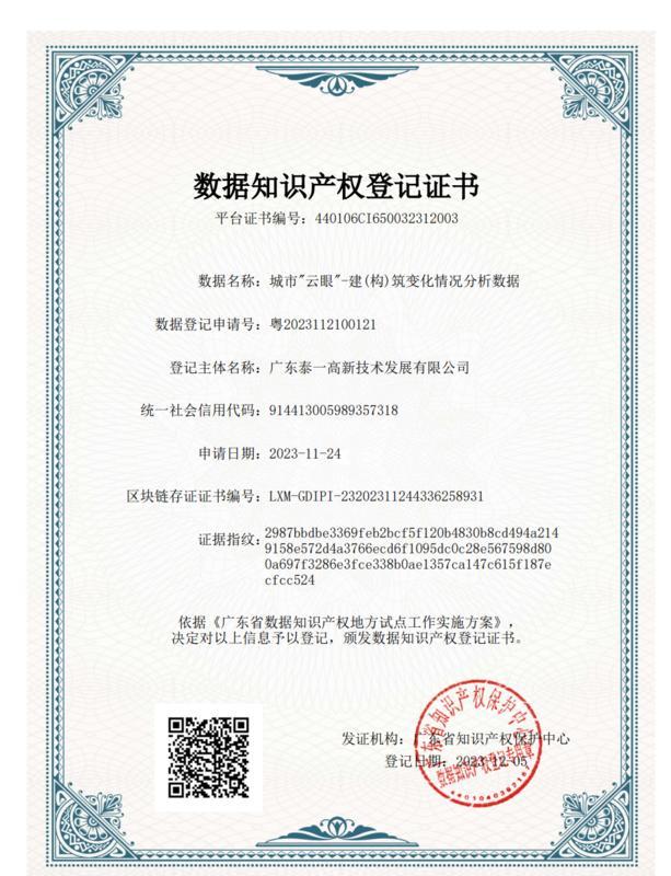 在國家積極探索數(shù)據(jù)知識產(chǎn)權(quán)保護(hù)規(guī)則的大背景下,泰一科技率先完成惠州市首批數(shù)據(jù)知識產(chǎn)權(quán)登記。通過登記確權(quán),泰一科技擁有對所登記數(shù)據(jù)的持有、使用、交易和收益等權(quán)利,數(shù)據(jù)知識產(chǎn)權(quán)登記證書成為其數(shù)據(jù)權(quán)屬證明。