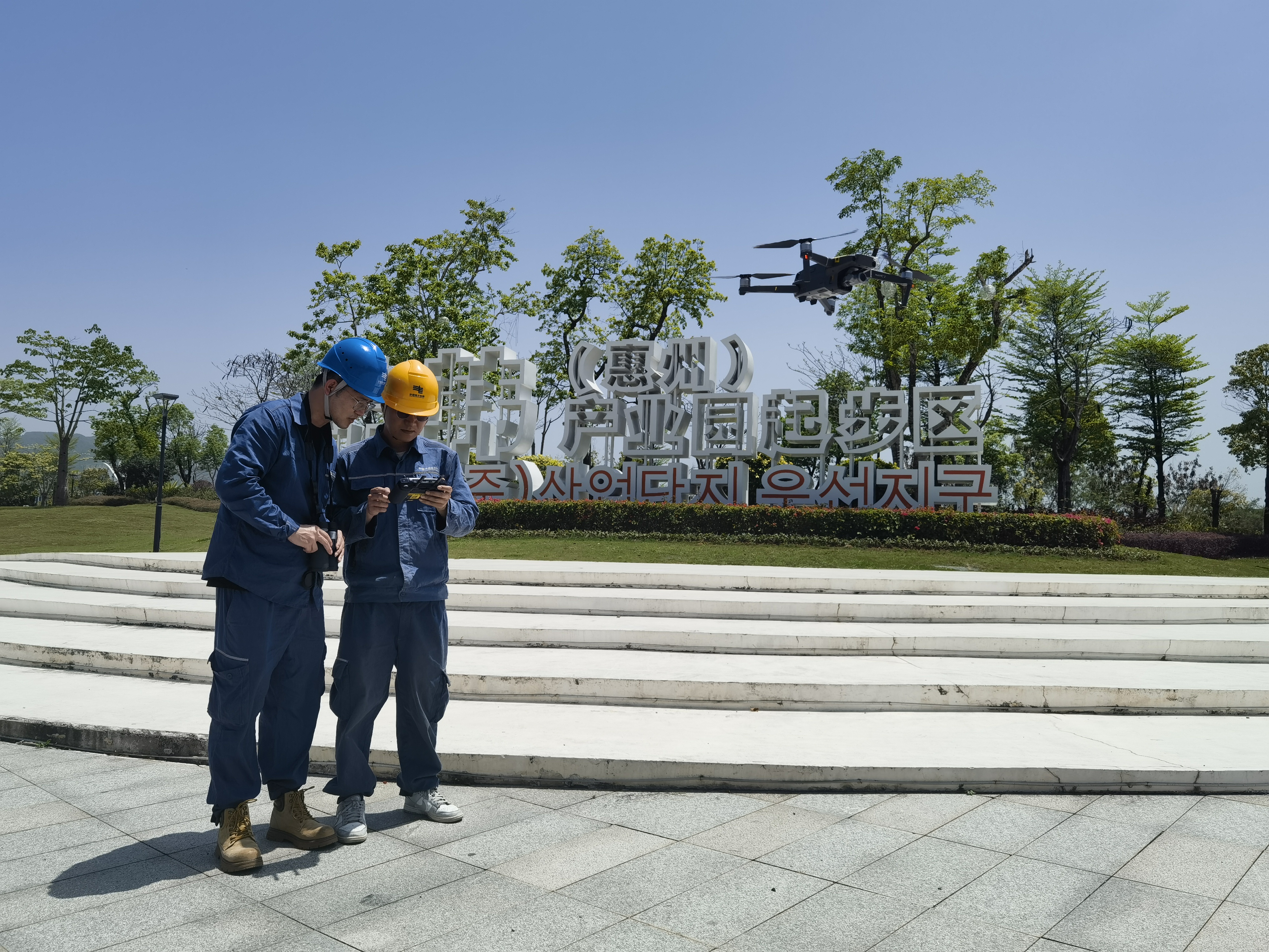 仲愷供電局運維人員在中韓(惠州)產(chǎn)業(yè)園開展線路巡視工作,保障周邊用戶用電安全。