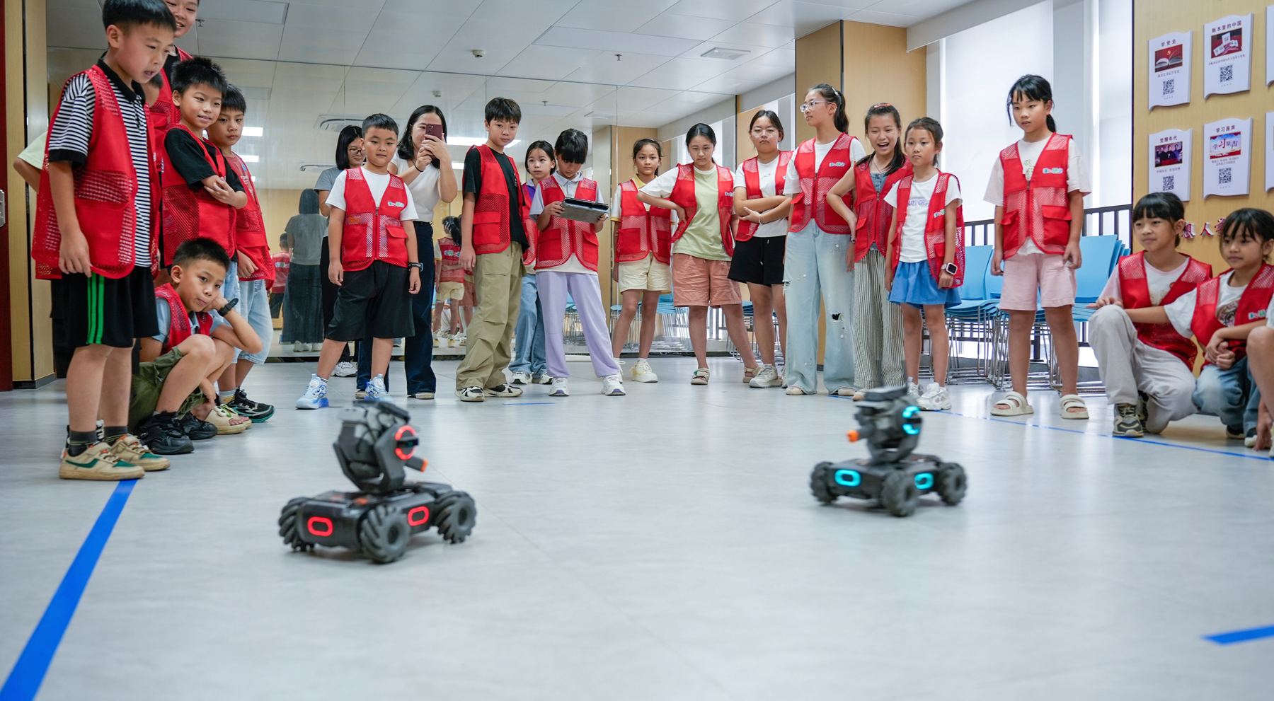 “機器人能像蜘蛛一樣爬嗎”“它們會踢足球嗎”“機器人能聽懂我說話嗎”……8月21日,惠州市潼湖生態(tài)智慧區(qū)產(chǎn)業(yè)發(fā)展事務中心組織開展“潼心研學·智啟未來”科技主題研學活動,30名園區(qū)企業(yè)員工子女帶著一連串充滿童趣的問題,開啟了一場機器人探索之旅。