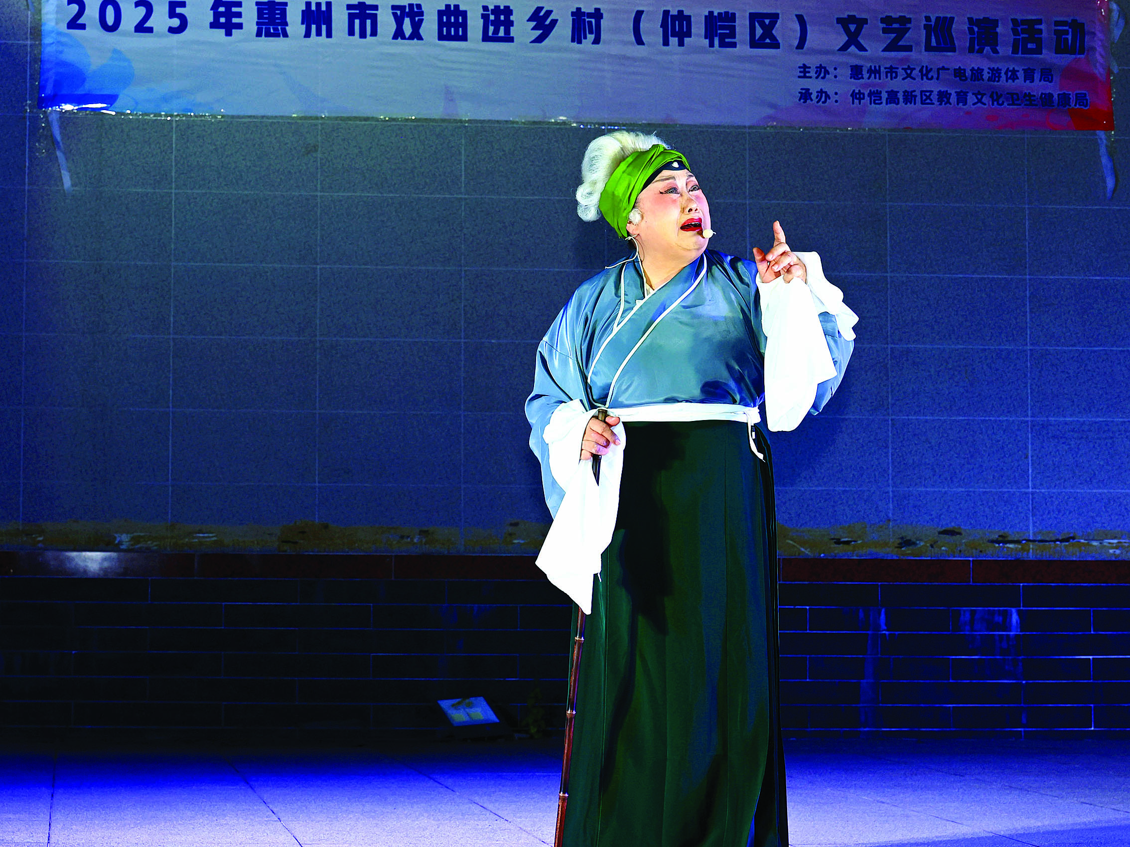 巡演由惠州市文化廣電旅游體育局與仲愷高新區(qū)教育文化衛(wèi)生健康局聯(lián)合主辦,仲愷高新區(qū)文化旅游體育事務(wù)中心承辦,近半個(gè)月,足跡遍布潼僑金星村、潼湖赤崗村、陳江幸福村、瀝林君子營村、惠環(huán)平南村等12個(gè)“百千萬工程”典型村。作為傳承中華優(yōu)秀傳統(tǒng)文化賦能“百千萬工程”的重要實(shí)踐,此次巡演緊扣農(nóng)村群眾文化需求,精心編排國粹經(jīng)典與多元藝術(shù)融合的節(jié)目矩陣。不同于以往的文藝演出,本次活動(dòng)既注重“專業(yè)性”,更突出“接地氣”,每場演出戲曲節(jié)目時(shí)長不低于45分鐘,讓村民過足戲癮。傳統(tǒng)技藝展示成了每場演出的“流量擔(dān)當(dāng)”。這些充滿巧思的表演,不僅展現(xiàn)了戲曲藝術(shù)的多樣性,也為巡演增添了互動(dòng)樂趣。