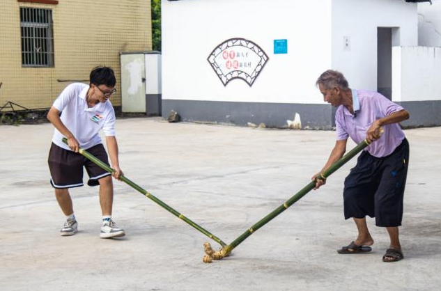 然而,隨著時代變遷,娛樂方式逐漸豐富,年輕一代對打橢的認(rèn)知日益淡薄。為搶救與活化打橢文化,2024年,當(dāng)?shù)靥貏e邀請廣東科技學(xué)院“承非遺印記”擊隊(duì),專程前往潼湖赤崗村開展“三下鄉(xiāng)”實(shí)踐工作。突擊隊(duì)通過實(shí)地調(diào)研村落風(fēng)貌、走訪熟悉打橢歷史的老人、收集散落的史料文獻(xiàn)等方式,系統(tǒng)梳理出打橢的文化起源、發(fā)展脈絡(luò)與器具制作技藝細(xì)節(jié),不僅為這項(xiàng)傳統(tǒng)游藝留存了珍貴資料,更通過后續(xù)宣傳進(jìn)一步弘揚(yáng)其強(qiáng)身健體、聯(lián)結(jié)鄰里的獨(dú)特價值,讓打橢背后的文化內(nèi)涵被更多人知曉。