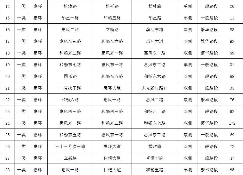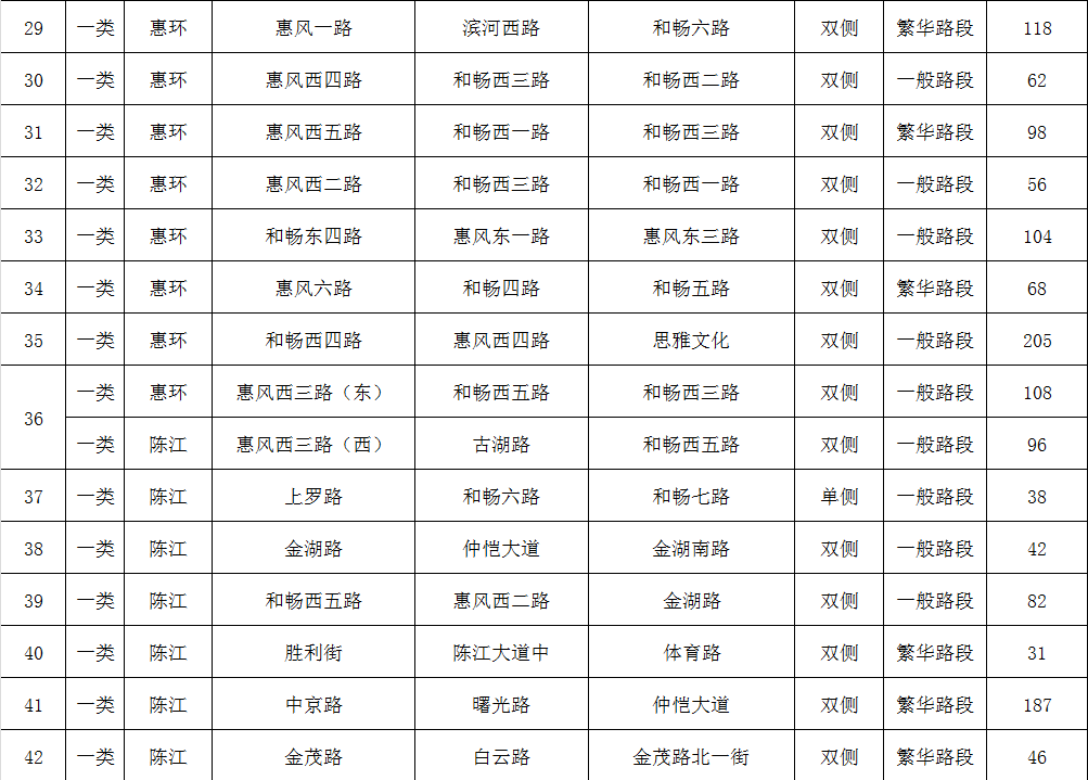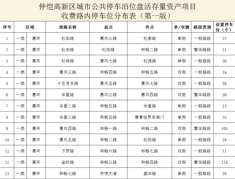 (項(xiàng)目收費(fèi)路內(nèi)停車位分布表)